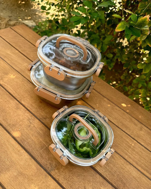 کاسه استیل 3 تکه درب دار قفلی