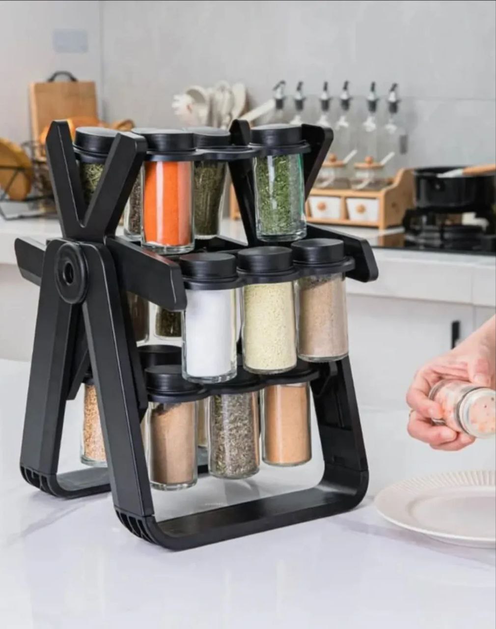 جاادویه چرخشی ۱۸ خانه؛ شیشههای نمکپاش + بدنه شیشهای ضخیم ✨