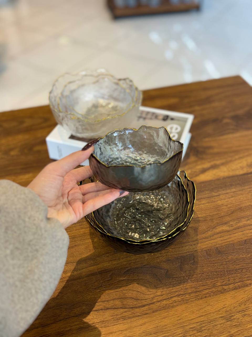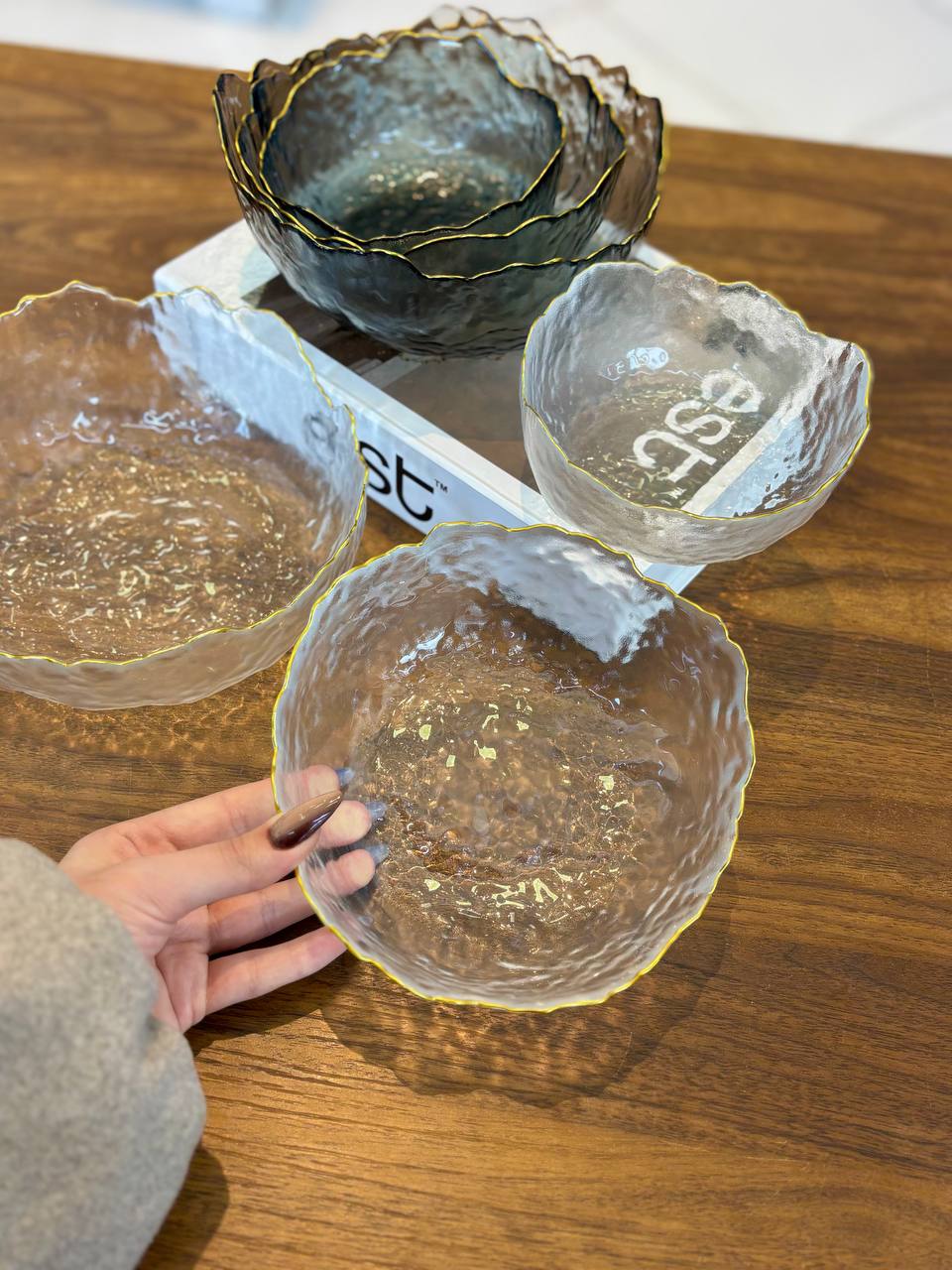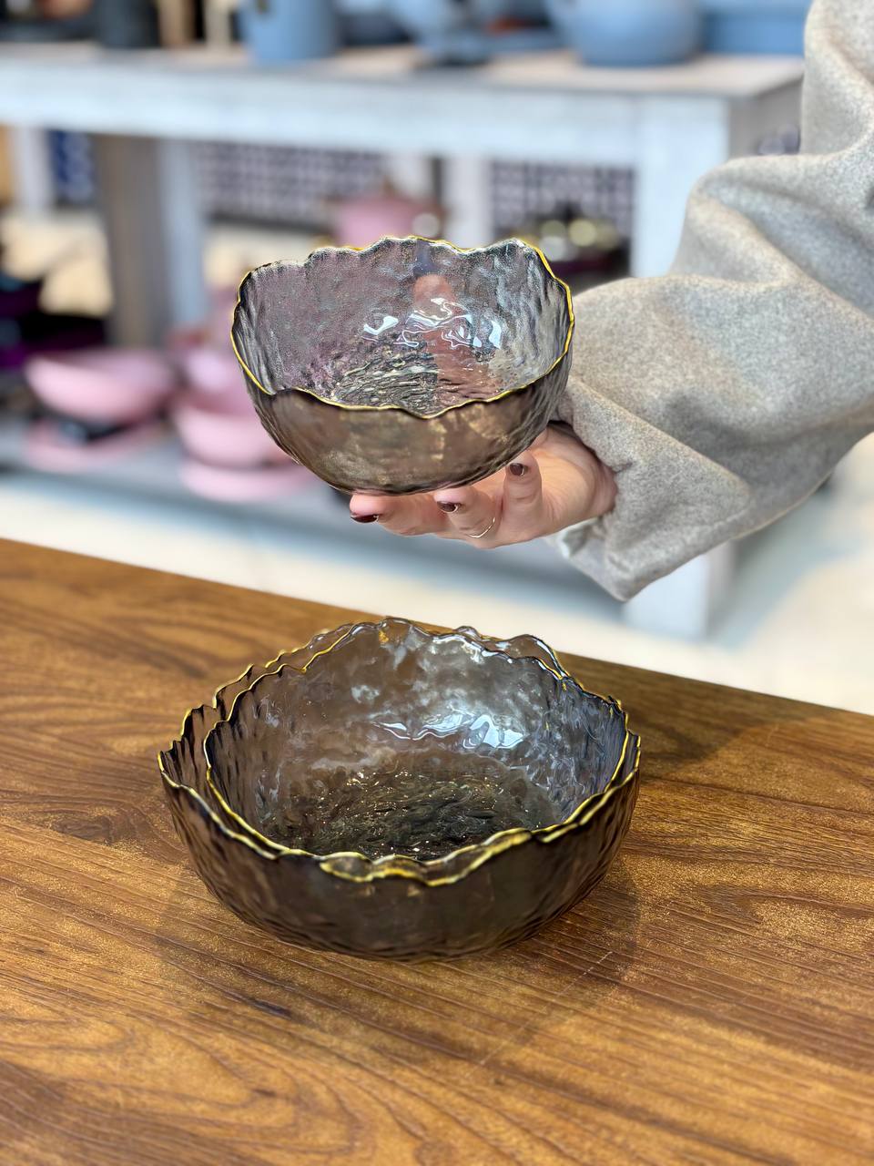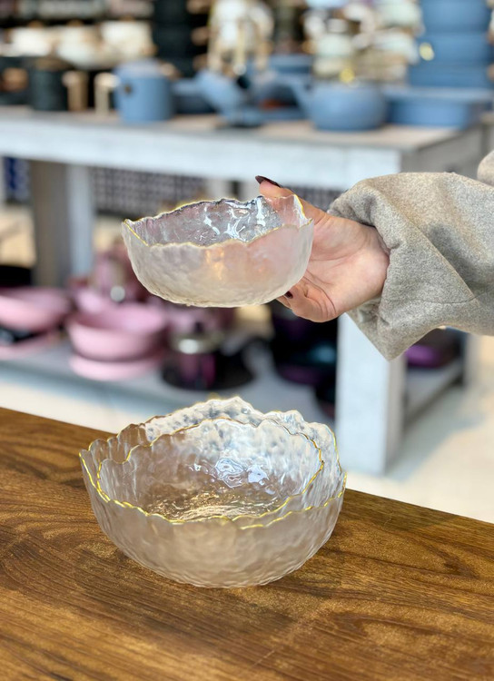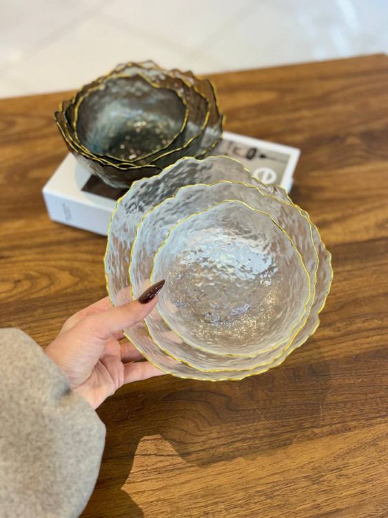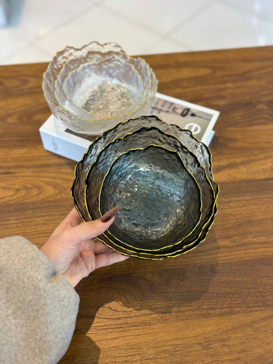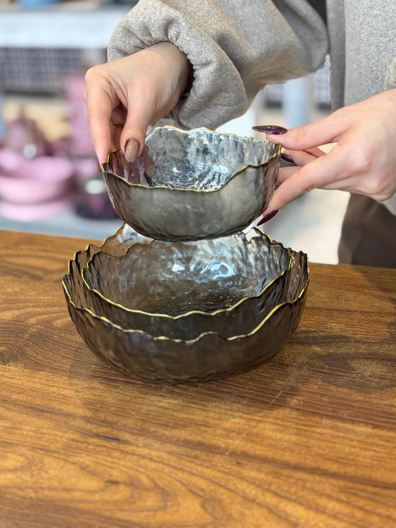 کاسه 3 تایی دفرمه ساده لب طلایی وارداتی