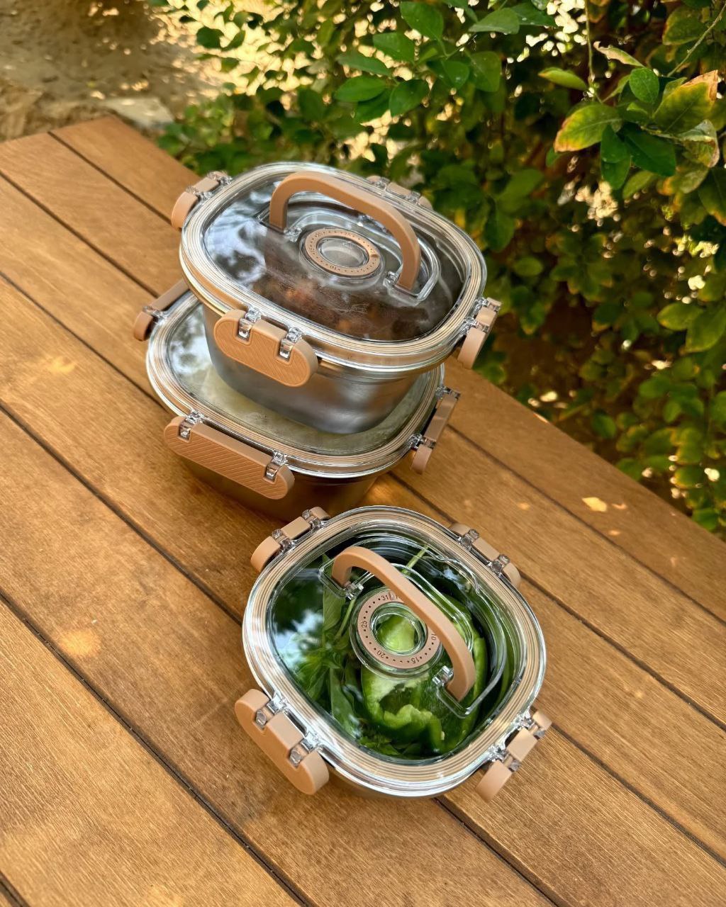 کاسه استیل 3 تکه درب دار قفلی🔒