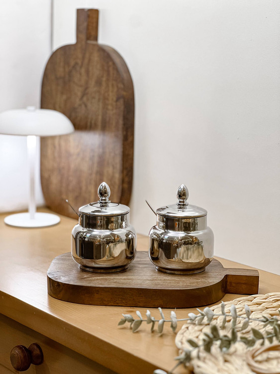 جاشکری قندان استیل وارداتی همراه قاشق استیل